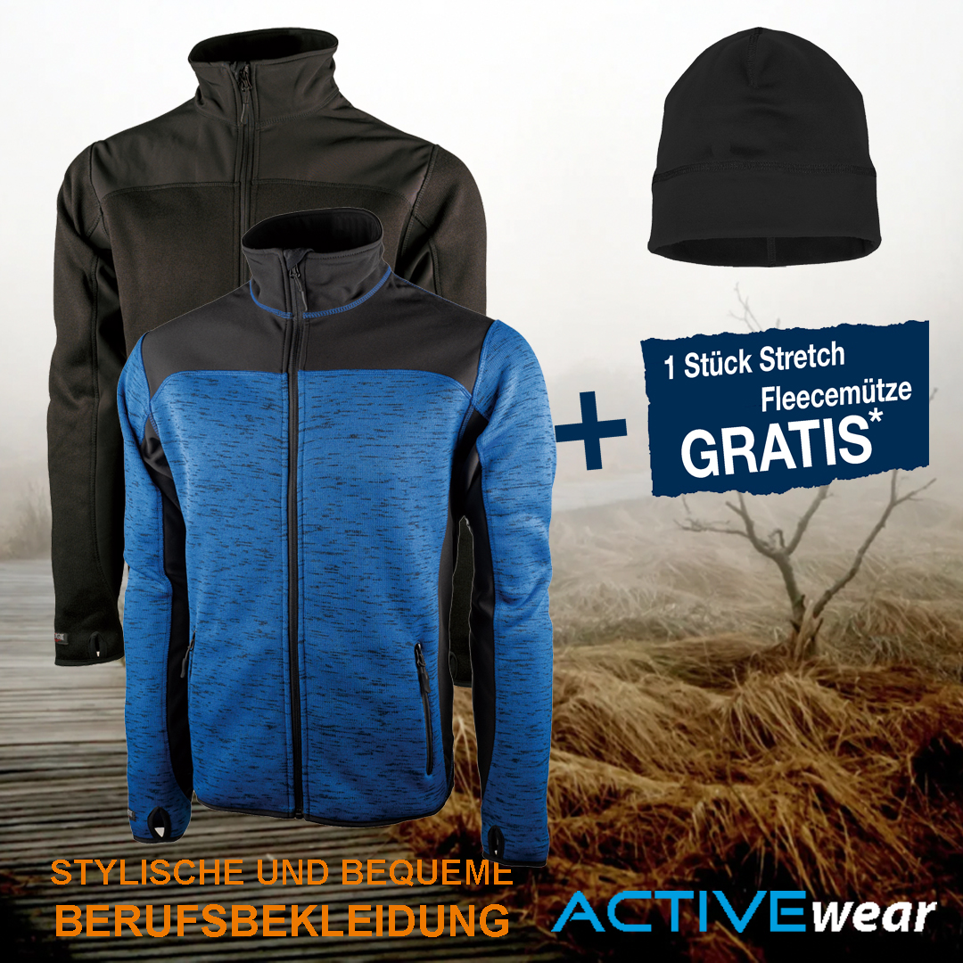 Strick-Softshell Jacke IMST + Stretch-Fleecemütze schwarz